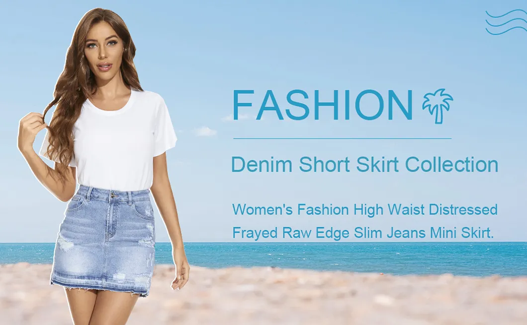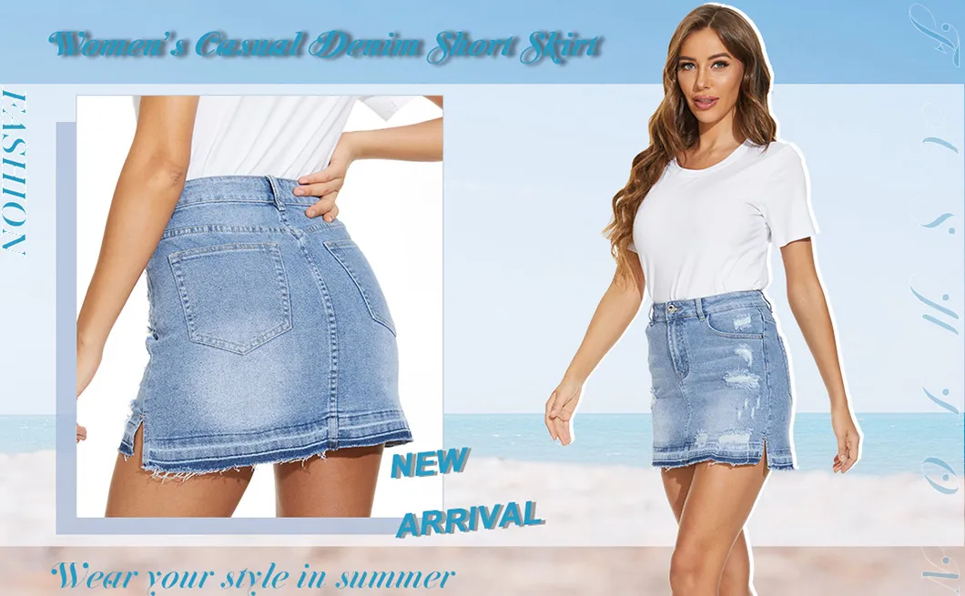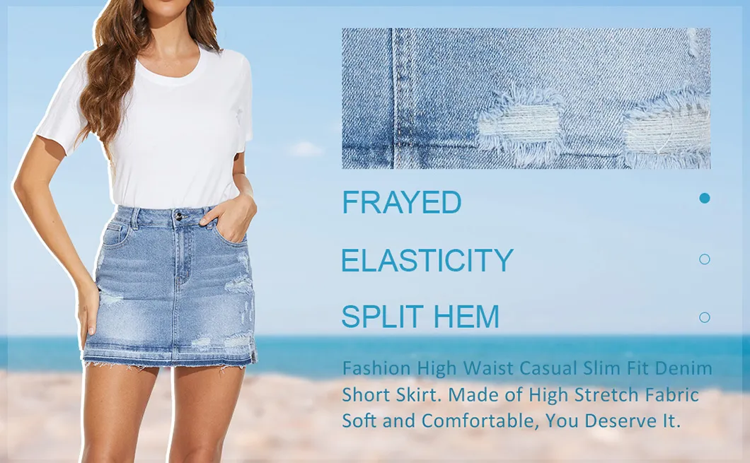 Custom Light Blue Jeans Women Ripped Shorts Design Hem Denim Ladies Skirts