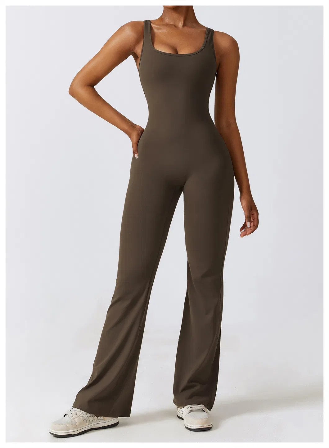 Women's Sexy Scoop Neck One Piece Tank Top Sleeveless Backless Bodycon Long Jumpsuits Scrunch Butt Rompers Playsuit